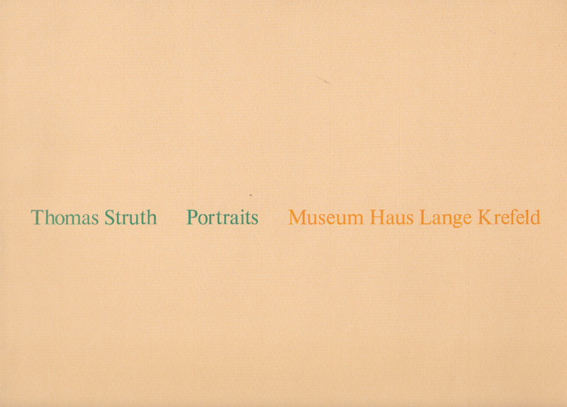 Struth, Thomas: Portraits. Museum Haus Lange Krefeld, 23. Februar bis 26. April 1992. 1. Auflage. Krefeld. Museum Haus Lange. 1992. 30 x 24 cm. 63 S. OKarton mit OUmschlag. Gutes bis sehr gutes Exemplar. Der Katalog zu einer der frühesten institutionellen Einzelausstellungen Struths enthält einen Text von Julian Heynen sowie 27 ganzseitige Wiedergaben von s/w und Farbfotografien.