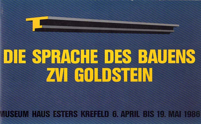 Goldstein, Zvi: Die Sprache des Bauens. Museum Haus Esters Krefeld, 6. April bis 19. Mai 1986. 1. Auflage. Krefeld. Museum Haus Esters. 1986. 30 x 19 cm. 24 unpaginierte S. OKarton. Umschlag minimal berieben, sonst sehr gutes Exemplar. Durchgehend mit Abbildungen versehen. Auf dem Innendeckel eine sechszeilige handschriftliche Widmung Goldsteins an einen Mitarbeiter der Krefelder Museen, datiert 24-4.86, signiert.