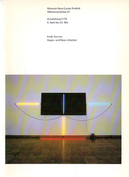 Sonnier, Keith: BA-O-BA. Sel Series. Argon- und Neon-Arbeiten. Museum Haus Lange, Krefeld, 8. April bis 20. Mai 1979. Erste Auflage. Krefeld. Kaiser Wilhelm Museum. 1979. 23 x 17 cm. 32 unpaginierte S. OKarton. Einband lichtrandig und gering angestaubt, sonst gutes Exemplar. Ausstellung 2/79. Mit Textbeiträgen von Keith Sonnier (Deutsch und Englisch) und Gerhard Storck. Durchgehend mit meist farbigen Abbildungen versehen.