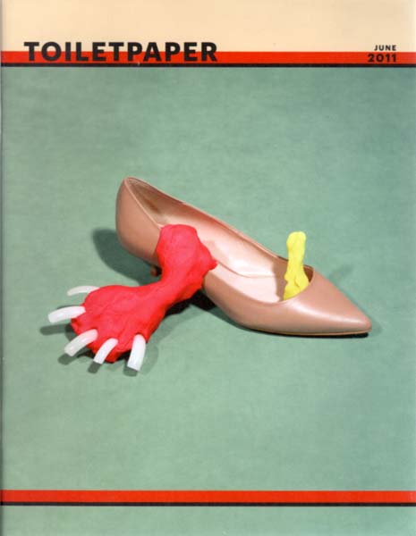 Cattelan, Maurizio / Pierpaolo Ferrari: Toiletpaper. June 2011. Erste Auflage. Ohne Ort. Seste Foundation. 2011. 29 x 22 cm. [40] unpaginierte S. Illustrierter OKarton mit Klammerheftung. Sehr gutes Exemplar. Toiletpaper ist ein von Maurizio Cattelan 2010 gegründetes und herausgegebenes textfreies Bildmagazin. Durchgehend mit meist farbigen Abbildungen versehen / Toiletpaper is a picture based magazine founded in 2010 by Maurizio Cattelan and Pierpaolo Ferrari.