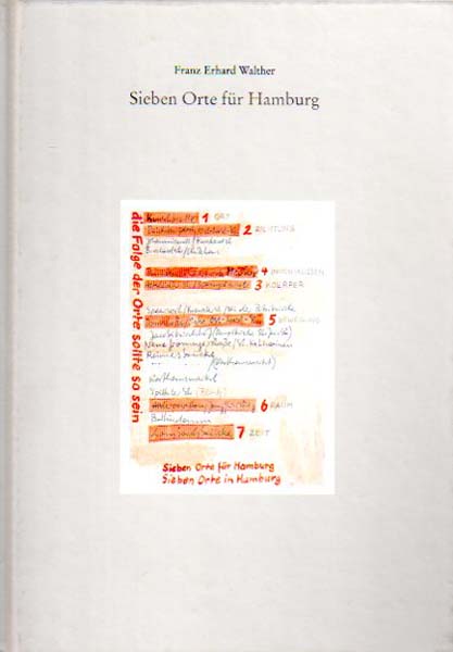 Walther, Franz Erhard: Sieben Orte für Hamburg. Kunsthalle. Deichtorhalle. Altstädter Straße/Springeltwiete. Meßberg/Fischertwiete/Pumpen. Domstraße/Ecke Ost-West Straße. Jungfernstieg. Lombardsbrücke (Ufer Binnenalster). Auflage: 5000 Exemplare. Hamburg. Kulturbehörde der Freien Hansestadt Hamburg. 1990. 22 x 15 cm. 76 S. OPappband. Einband etwas angestaubt, sonst sehr gutes Exemplar. Mit Texten von Franz Erhard Walther und Michael Lindner. Durchgehend mit Abbildungen versehen, teilweise in Farbe.