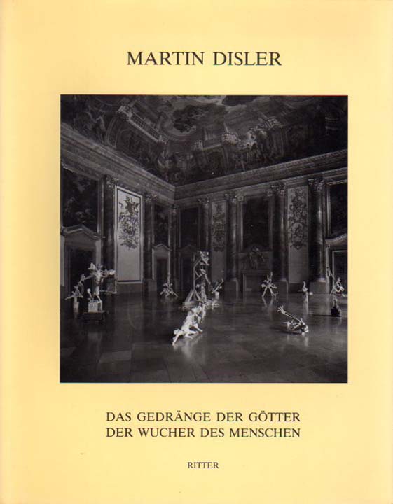 Disler, Martin: Das Gedränge der Götter der Wucher des Menschen. Mit Texten von Demosthenes Davvetas, Martin Disler, Wolfgang Drechsler. Erste Auflage. Klagenfurt. Ritter Verlag. 1987. 26 x 20 cm. 74 S. OPappband mit OUmschlag. Sehr gutes Exemplar. Erschien anläßlich der Ausstellung „Martin Disler. Das Gedränge der Götter der Wucher des Menschen“, Museum moderner Kunst, Wien, 6. September bis 26 Oktober 1987. Beiliegend ein Faltplakat, „Die Liturgie der Verdammten“, Disler bei Paul Maenz, 7.7.-26.8.1989. 59 x 42 cm.
