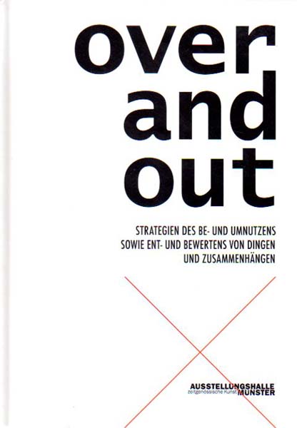Over and Out. Strategien des Be- und Umnutzens sowie Ent- und Bewertens von Dingen und Zusammenhängen. Eine Gruppenausstellung von Angela Fette / Guido Münch, Marcel Hiller / Sebastian Walther, Lars Breuer / Sebastian Freytag. Erste Auflage. Münster. Ausstellungshalle zeitgenössische Kunst. 2009. 25 x 17 cm. 159 S. OPappband. Tadelloses, neuwertiges Exemplar (Originalverpackt). Erschien anläßlich der Ausstellung: Ehemalige Lagerhalle und ehemaliges Amtsgebäude, Münster, 11. September – 15. November 2009.