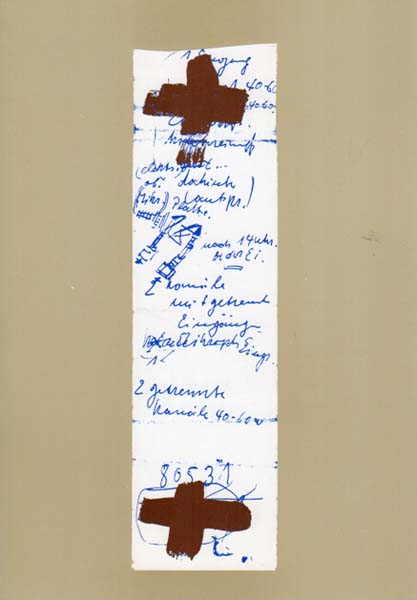 Beuys, Joseph: Braunkreuz. Nijmeegs Museum „Commanderie van Sint-Jan“, 24 augustus t/m 13 oktober 1985. Erste Ausgabe. Nijmegen. Museum „Commanderie van Sint-Jan“. 1985. 25 x 17 cm. 136 S. OKarton. Rücken aufgehellt, winzige Stauchspur am Kopf, sonst noch gutes Exemplar. Durchgehend mit Abbildungen versehen, der kurze einführende Text von Hans und Franz Joseph von der Grinten in Deutsch und Niederländisch.