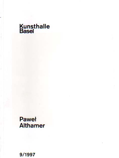 Althamer, Pawel: Kunsthalle Basel. [Katalog] 9/1997. 1. Auflage. Basel. Kunsthalle. 1997. 23 x 17 cm. 56 unpaginierte S. OKarton. Gutes bis sehr gutes Exemplar. Erste institutionelle Ausstellung Althamers außerhalb Polens. Durchgehend mit meist farbigen Abbildungen versehen. Mit einem Text von Andrzej Przywara in Englisch und Deutsch.