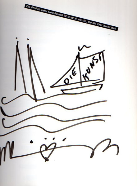 Schult, HA – Thomas Höpker, Eva Windmöller, Klaus Honnef: Fetisch Auto. Erste Auflage. Düsseldorf. Claassen Verlag. 1989. 29 x 24 cm. 147 S. OKarton mit OKlappenumschlag. Rücken mit leichter Leseknitterung, sonst sehr gutes Exemplar. Sxeite 3 mit einer ganzseitigen Filzstift-Zeichnung von HA Schult, signiert. Durchgehend mit meist farbigen Abbildungen versehen.