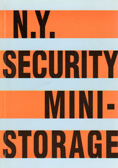 New York Security Mini-Storage. Erste Auflage. Nürnberg. Verlag für moderne Kunst. 1998. 3-928342-95-9 36 unpaginierte S. OKarton. Sehr gutes Exemplar. Texte teilweise in Deutsch und teilweise in Englisch. Mit Beiträgen von Caroline Nathusius, Mark von Schlegell, Andrea Knobloch, [und weitere]. Durchgehend mit Abbildungen versehen.