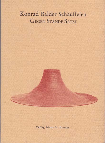 Schäuffelen, Konrad Balder: Gegen Stände Sätze. Auflage 600 Exemplare. Erlangen. Erlangen/ München. Städtische Galerie Erlangen. Renner Verlag. 1979. 14,5 x 10,5 cm. 77 S., 1 Blatt. Illustrierter OKarton. Einbandkanten etwas lichtrandig und mit kleinen Bereibungen. Sonst gutes bis sehr gutes Exemplar. Katalog zur Ausstellung Erlangen 6. bis 31. Mai 1979 durchgehend mit Abbildungen versehen. Inliegend illustrierter Postkarte zur Ausstellung.