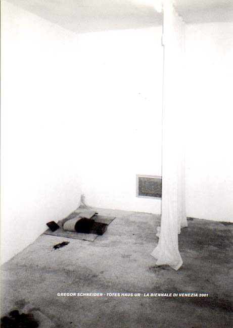 Schneider, Gregor: Totes Haus ur. La Biennale di Venezia 2001. Erste Auflage. Ostfildern-Ruit. Hatje Cantz Verlag. 2001. 24 x 17 cm. 103 S. OKarton mit illustriertem OKlappenumschlag. Sehr gutes Exemplar. Texte in Deutsch und Englisch. Mit Beiträgen von Udo Kittelmann, Elisabeth Bronfen und Daniel Birnbaum. Durchgehend mit s/w Abbildungen versehen. Erschien anläßlich der gleichnamigen Ausstellung, La Biennale di Venezia, Deutscher Pavillon, 10.6. – 4.11.2004.