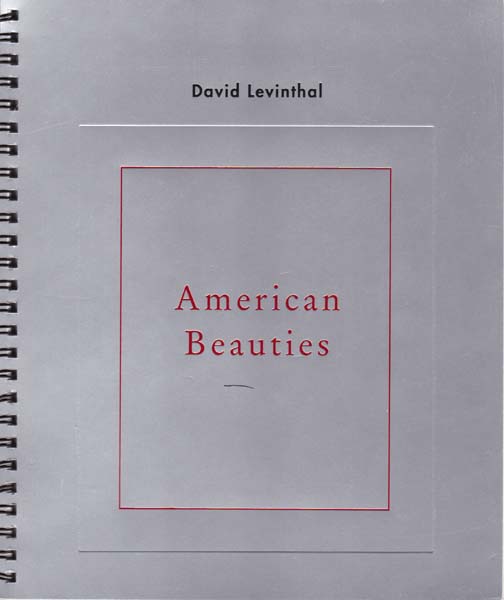 Levinthal, David: American Beauties. Erste Auflage. Santa Monica. New York. Pence Gallery. Laurence Miller Gallery. 1990. 23 x 19 cm. 31 S. Spiralbindung. Einbandkanten mit minimalsten Bereibungen. Sonst sehr gutes Exemplar. Katalog zu den Ausstellungen 14. April bis 19. Mai 1990 und 19. April bis 26. Mai 1990. Mit 12 ganzseitigen, mit einer Polaroid-Kamera gemachten Photographien versehen. Text in englischer Sprache.