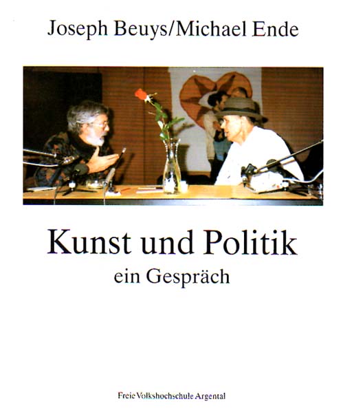 Beuys, Joseph [und] Michael Ende: Kunst und Politik – ein Gespräch. Erste Auflage. Wangen. Freie Volkshochschule Argental. 1989. 24 x 20 cm. 118 S., 3 Blatt. OKarton. Sehr gutes Exemplar. Dokumentiertes Gespräch zwischen Beuys und Ende, mit einigen Fotografien und Werkabbildungen.