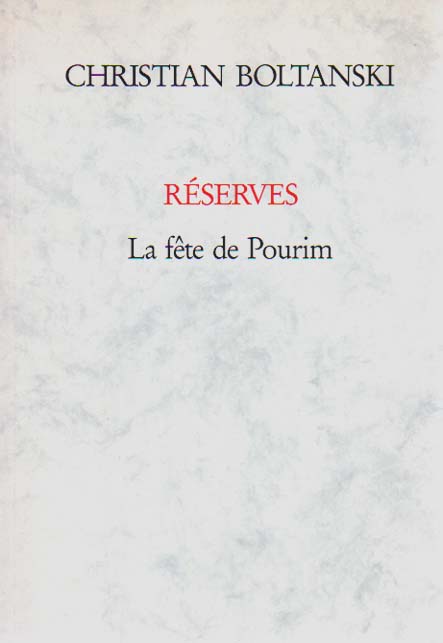 Boltanski, Christian: Reserves. La fete de Pourin. Museum für Gegenwartskunst, 28. Januar – 27. März 1989. 1. Auflage. Basel. Museum für Gegenwartskunst. 1989. 23 x 16 cm. 31 (1)S., 1 Blatt. OKarton. Tadelloses Exemplar. Enthält ein Gespräch von Jörg Zutter mit Christian Boltanski sowie 23 s/w und eine farbige Fototafeln. Beiliegend ein Lesezeichen mit drei Kinderfotografien, „Wenn Sie sich wiedererkennen, oder wenn Sie wissen, wer die Kinder sind, schreiben Sie bitte Christian Boltanski“. Vgl. Calle, S. 58; Fly 67, beide mit Abbildungen].