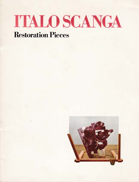 Scanga, Italo: Restoration Pieces. Erste Auflage. New York. Alessandra Gallery. 1975. 28 x 21 cm. 12 unpaginierte S. Illustrierte OBroschur. Einbandkanten minimal lichtrandig. Sonst sehr gutes Exemplar. Katalog zur Ausstellung New York 1. November bis 29. November 1975. Durchgehend mit Abbildungen sowie Bio- und Bibliographie des Künstlers versehen. Text in englischer Sprache-