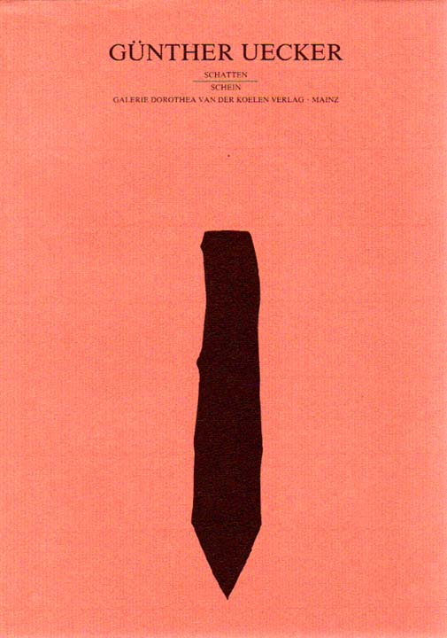 Uecker, Günther: Schatten Schein. [6. November bis 19. Dezember 1987, Galerie Dorothea van der Koelen, Mainz]. Erste Auflage. Mainz. Galerie Dorothea van der Koelen Verlag. 1988. 30 x 21 cm. 84 S. OKarton mit OUmschlag. umschlag am oberen Kapital mit winzigem Einriss, sonst gutes Exemplar. Dokumente unserer Zeit ; Band 4. Texte in Deutsch und Englisch. Mit Beiträgen von Dorothea van der Koelen und Siegfried Salzmann. Durchgehend mit Abbildungen versehen, teilweise in Farbe.