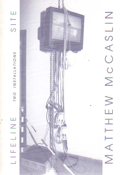 McCaslin, Matthew: Lifeline / Site. Two Installations. Auflage: 800 Exemplare. Nürnberg. Galerie Sima. 1995. 21 x 15 cm. 40 S. OKarton. Gutes Exemplar. Texte in Deutsch und Englisch. Mit Beiträgen von Thomas Kliemann und Matthew McCaslin. Erschien anläßlich der Ausstellung „Lifeline“ von Matthew McCaslin in der Galerie Sima, Nürnberg, 7. März bis 27. Mai 1995.