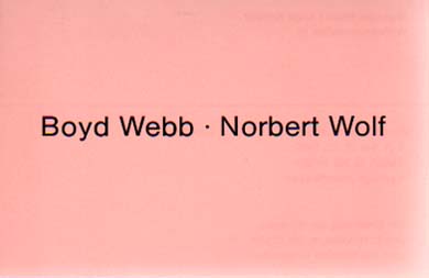 Webb, Boyd: Boyd Webb – Norbert Wolf. Forum Haus Lange, 2.11. bis 21.12.1980. [Einladungskarte]. Krefeld. Museum Haus Lange. 1980. 14 x 9 cm. OKarton. Sehr gutes Exemplar. Nicht postalisch gelaufene Einladungskarte.