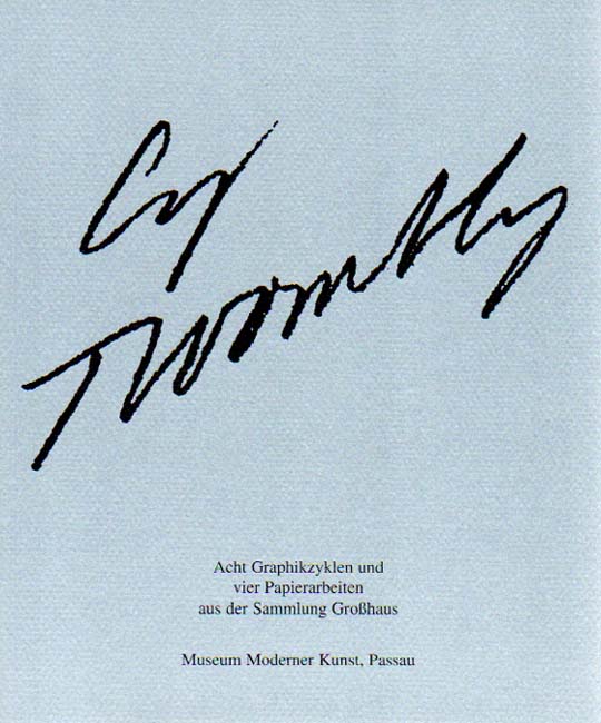 Twombly, Cy: Acht Graphikzyklen und vier Papierarbeiten aus der Sammlung Großhaus. Museum Moderner Kunst – Stiftung Wörlen, Passau, 20. April bis 9. Juni 2002. Auflage: 500 Exemplare. Passau. Museum Moderner Kunst – Stiftung Wörlen. 2002. 24 x 20 cm. 79 S. OKarton mit OKlappenumschlag. Sehr gutes, frisches Exemplar. Mit einem Textbeitrag von Christian Rathke. Durchgehend mit farbigen Abbildungen versehen.