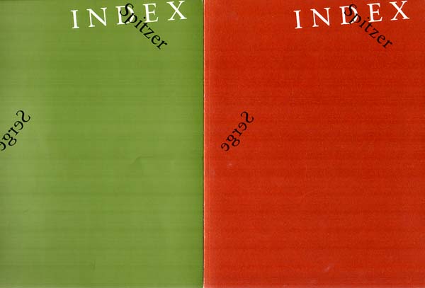 Spitzer, Serge: Index 1972-1992. Haags Gemeentemuseum, Den Haag / Kunstverein für die Rheinlande und Westfalen, Düsseldorf / IVAM Centre Julio Gonzalez, Valencia / Henry Moor Institute, Leed. 1. Ausgabe. 2 Bände. Den Haag. Düsseldorf. Valencia. Leed. Selbstverlag der Museen. 1992. 30 x 22 cm. 195; 16 S. OKarton mit OKLappenumschlag / OKarton. Gutes bis noch sehr gutes Exemplar. Durchgehend mit oft farbigen Abbildungen versehen. Texte in Englisch, Spanisch und Deutsch. Mit dem Supplementband zur Ausstellung.