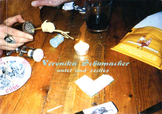 Schumacher, Veronika: untot und zeitlos. Erste Auflage. [Ohne Ort]. Selbstverlag. 2002. 15 x 21 cm. 40 unpaginierte S. OKlappenbroschur. Einbandkanten minimal berieben, sonst gutes Exemplar. Mit einem Textbeitrag von Raimar Stange. Durchgehend mit farbigen Abbildungen versehen. Erschien anläßlich der Ausstellung „Hell: deconstructing“ im Cuxhavener Kunstverein, Jun. 2001.