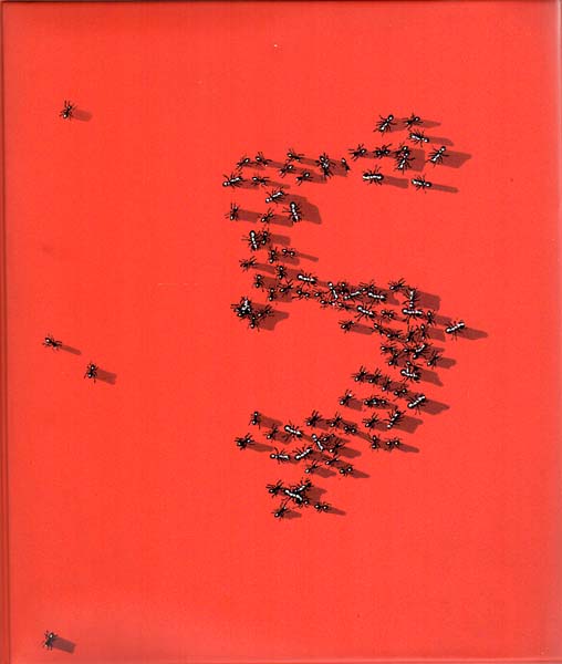 documenta 5. Befragung der Realität. Bilderwelten heute. Kassel 30. Juni bis 8. Oktober 1972. Neue Galerie Schöne Aussicht. Kassel. documenta GmbH / Bertelsmann Gruppe. 1972. 32 x 27 cm. ca. 550 S. Orange-roter Original Plastikringordner mit Ameisenaufdruck, zur 5 angeordnet, gestaltet von Ed Rusha. Sehr gutes Exemplar. Der aufwändigst gestaltete Documenta Katalog mit der geringsten Auflage. Die Anordnung der Ameisen auf dem vorderen Deckel, ein Entwurf von Ed Ruscha, symbolisiert die 5. Documenta. Mit zahlreichen Abbildungen. Diese von Harald Szeemann kuratierte documenta gilt als die innovativste, spannungsgeladenste, auch über ihre Zeit hinaus. Register 19 bis 25 des Kataloges waren nicht direkt integriert und mussten nachgeordert werden, weshalb sie meist fehlen. Das Register 19 / [20] enthält hier die 64- und 80seitige Dokumentation „Begfragung der Realität: Verzeichnis der ausgestellten Werke“, Register 21 enthält das Magazin „informationen“, documenta 5“ in den Farben des Katalogeinbandes gehalten, 52 S., DIN A4, das Register 25 enthält den Fotonachweis.