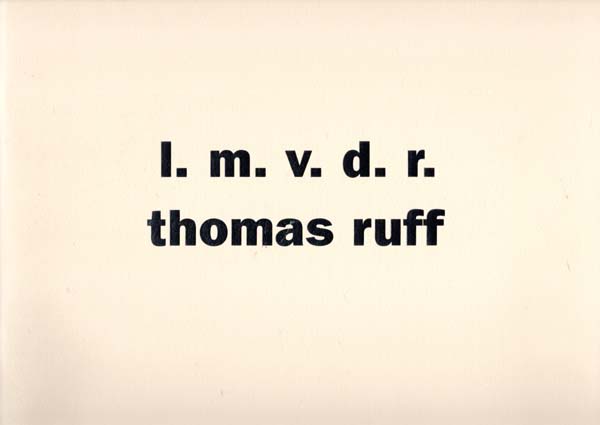 Ruff, Thomas – Julian Heynen [Herausgeber]: l.m.v.d.r. 1 – 2. Herausgegeben von / edited by Julian Heynen. Erste Auflage. 2. Bände. Krefeld. Haus Lange – Haus Esters. 2000. 24 x 30 cm. 48, 32 unpaginierte S. OBroschur. Rücken des ersten Bandes marginal aufgehellt, sonst sehr gutes, frisches Exemplar. Vollständige Folge des von Thomas Ruff’ initiierten Fotoprojekts über die Bauten von Ludwig Mies van der Rohe, hier die Krefelder Villen Haus Lange und Haus Esters, in zwei Bänden. Erschienen anlässlich der Ausstellung „l.m.v.d.r. – thomas ruff“ Krefeld 18. Juni bis 17. September 2000. Mit zahlreichen photographischen Aufnahmen versehen. Enthält Texte von Julian Heynen und Rita Kersting in Deutsch und englisch. Vollständig recht selten.