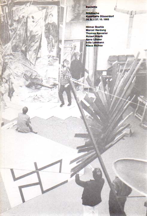 Bauhütte. Hilmar Boehle – Marcel Hardung – Thomas Kesseler – Robert Knuth, Anna Löbner, Julia Lohmann, Klaus Richter. Premiere in der Städtischen Kunsthalle Düsseldorf, 14.9. – 27.10.1985. Erste Auflage. Düsseldorf. Städtische Kunsthalle Düsseldorf. 1985. 30 x 21 cm. 31 S. OKarton. Gutes Exemplar. Durchgehend mit s/w Abbildungen versehen.