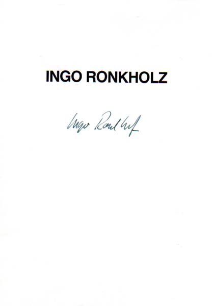 Ronkholz, Ingo: Sammlung Einladungskarte. Konvolut von 20 Einladungskarten / Klappkarten verschiedener Formate von 1984 bis 2004 zu Galerie – und Museums-Einzelausstellungen sowie 2 Karten Gruppenausstellungen. Dabei ein Katalog der Galerie Christian Fochem zur Ausstellung „Ingo Ronkholz – Skulptur und Zeichnung“ von 1985, auf dem Umschlag vom Künstler signiert. Ferner dabei: 3 Einladungskarten mit handschriftlichen Grußworten, unterschrieben „Ingo“ sowie ein handschriftlicher Brief mit einem kleinen gezeichneten Fahrrad, 10 Zeilen, DIN A4, unterschrieben „Ingo“, in postalisch gelaufenem Kuvert mit einem beiliegenden Foto einer Arbeit. Weiterhin dabei: Künstler. Kritisches Lexikon der Gegenwartskunst. Ingo Ronkholz. Ausgabe 72, Heft 26, 4. Quartal 2005, 16 S.