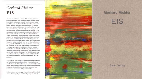 Richter, Gerhard: Eis. Auflage 300 Exemplare. Köln. Salon Verlag. 2016. 20 x 12 cm. 144 S.; 8 unpaginierte S. OKarton in OPapp-Kassette. Verlagsfrisches Exemplar (Neubuch). Faksimile des von Gerhard Richter 1981 für sein Künstlerbuch Eis entworfenem Dummy. Eis erschien 1981 in der Galerie Pieroni, Rom. Wie der Entwurf enthält das Faksimile 46 von Hand eingeklebte s/w Fotografien (hier in Reproduktion), die restlichen Seiten sind vakat. Der im Original entstandene Kleberdurchschlag der montierten Fotos ist hier ebenfalls im Druck faksimiliert. Der bei der Originalausgabe durch Gerhard Richter von Hand übermalte Umschlag – es erschienen 90 verschiedene Exemplare – ist hier nach einer Vorlage reproduziert. Das Faksimile erschien zur Ausstellung „polke / richter – Schöne Bescherung“ im Museum Schloß Morsbroich, Leverkusen, 2016. Beiliegend ein Textheft in Deutsch und Englisch von Dietmar Elger zu dieser Edition. Nummer 171 / 350 handschriftlich im Impressum des Beiheftes nummerierten Exemplaren, zusammen in einer Papp-Kassette.