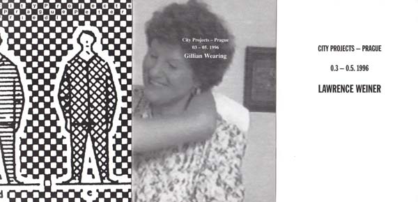 Weiner, Lawrence / Gillian Wearing / Bellamy & Bellamy: City Projects – Prague. 03. – 05.1996. The British Council, Prague. [By] Peter Freidl, Stefan Germer. First printing. 3 Bände. Prague. The British Council. 1996. 21 x 15 cm. 16; 16; 20 unpaginierte S. OKarton in OKuvert. Kuvert etwas angerissen, sonst sehr gutes Exemplar. 3 Kataloge zu den City-Projects in Prag 1996, Texte in Englisch und Tschechisch respektive bei Bellamy & Bellamy in Englisch und Deutsch. Jeweils mit Abbildungen auf Tafeln. [Vgl. As far as the eye can see. MOCA 2007, S. 371].