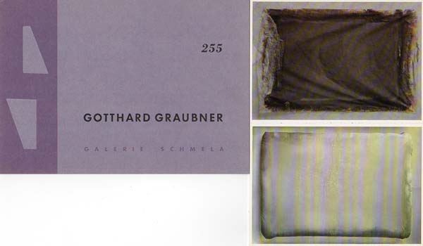 Graubner, Gotthard: Graubner. [Einladung] Galerie Schmela, 5. – 28. Oktober 1972. 1. Auflage. Düsseldorf. Galerie Schmela. 1972. 21,0 x 14,8 cm. OKarton-Karte. Sehr gutes Exemplar. Galerie Schmela, Ausstellung 127. Beiliegend eine weitere Einladung der Galerie zu Gotthard Graubner vom 16. September bis 29. Oktober 1988, Ausstellung 255.