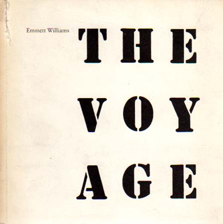 Williams, Emmett: The Voyage. Auflage: 1000 Exemplare. Stuttgart. Edition Hansjörg Mayer. 1975. 17 x 17 cm. [280] unpaginierte S. OKarton. Sehr gutes, frisches Exemplar. Künstlerbuch von Emmett Williams mit einem „Kinetischen Gedicht“ – 100 Wort-Quadrate, mit Wort-Fragmenten bestehend aus jeweils 3 Buchstaben, die sich verkleinern bis zur Größe eines Punkts. Text in Englisch / Text English.