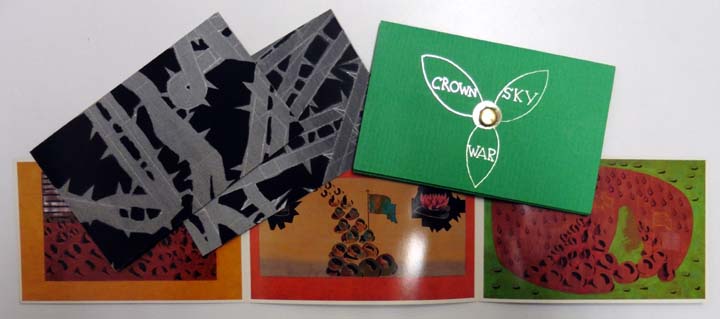 Clemente, Francesco: Crown, Sky, War. Erste Auflage. Köln. Galerie Paul Maenz. 1988. 10 x 15,5 cm. 3 Faltblätter. OKarton-Mappe mit Druckverschluss. Druckverschluss nicht mehr funktionsfähig, sonst gutes Exemplar. Mit 9 farbigen Abbildungen. Erschien anläßlich der Ausstellung „Francesco Clemente: Paintings“ bei Paul Maenz in Köln.