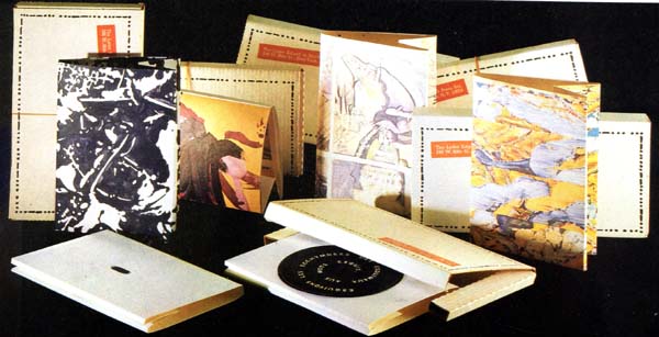 Copley, William [Editor]: S.M.S. [Shit must stop] No. 1, February 1968 – No. 6, December 1968. First edition. (6 Mappen). New York. The Letter Edge. Black Press. 1968. 27,5 x 18,0 cm (Box 35 x 20 cm). OKarton-Mappen in den OPapp-Versandkartons. Die erste Lieferung ohne den Versandkarton. Die vorhandenen 5 Versandkartons alle postalisch gelaufen mit entsprechenden Aufklebern, Packband und Stempeln, teils nachgedunkelt oder angestaubt. Sonst sehr gutes und frisches Exemplar. Vollständiges Exemplar aller sechs Folgen der von William Copley initiierten und herausgegebenen Multiple-Serie mit allen 73 Original-Multiples inklusive der Tonträger, bestehend aus verschiedenen Formaten wie Papier, Pappe, Kunststoff, Schallplatte, Tonkassetten, Künstlerbücher, Faksimiles, Objekten etc. Enthält Beiträge von: SMS 1, Februar 1968: Irving Petling, Su Braden, James Lee Byars, Christo, Walter de Maria, Richard Hamilton, Kaspar König, Julien Levy, Sol Mednick, Nancy Reitkopf, La Monte Young & Marian Zazeela / SMS 2, April 1968: Marcel Duchamp, Nicolas Calas, Bruce Conner, Marcia Herscovitz, Alain Jaquet, Ray Johnson, Lee Lozabo, Meret Oppenheim, Bernhard Pfriem, George Reavey, Clovis Trouille / SMS 3, Juni 1968: John Battan (John Sebestian Matta), Aftograf, Enrico Baj, William Bryant (Bill Copley), Dick Higgins, Joseph Kosuth, Ronnie Landfield, Roland Penrose, Man Ray, H.C.Westermann, Hannah Weiner, Terry Riley / SMS 4, August 1968: Robert Stanley, Arman Fernandez, Paul Bergtold, John Cage, Hollis Frampton, On Kawara, Roy Lichtenstein, Lil Picard, Demenico Rotella, Robert Watts, Princess Winifred, La Monte Young/ Marian Zazeela / SMS 5, Oktober 1968: Congo (Schimpanse), William Anthony, Wall Batterton, William Copley, Edward Fitzgerald, Neil Jenney, Angus MacLise, Bruce Nauman, Yoko Ono, Mel Ramos, Robert Rohm, William Schwedeler, Diane Wakoski, Lawrence Weiner / SMS 6, Dezember 1968: Richard Artschwager, Ed Bereal, Diter Rot, Betty Dodsen, Ronaldo Ferri, John Giorno, Toby Mussman, Adrian Nutbeem, Claes Oldenburg, Mischa Petrov, Jean Reavey, Bernar Venet, Paul Steiner. 5 der 6 Mappen in den dafür verwandten Versandkartons.