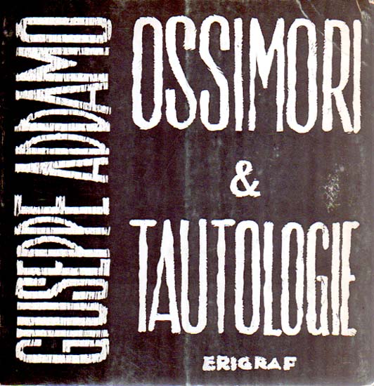 Adamo, Giuseppe: Ossimori & Tautologie. Auflage: 400 Exemplare. Modena. Selbstverlag. 1972. 20 x 20 cm. 60 unpaginierte S. OKarton. Einband stärker gebrauchsspurig, sonst gutes Exemplar. Text in Italienisch. Mit einer Einleitung von Eugenio Miccini. Verzeichnet 15 ganzseitig abgebildete Arbeiten (in Schwarz-Weiß).