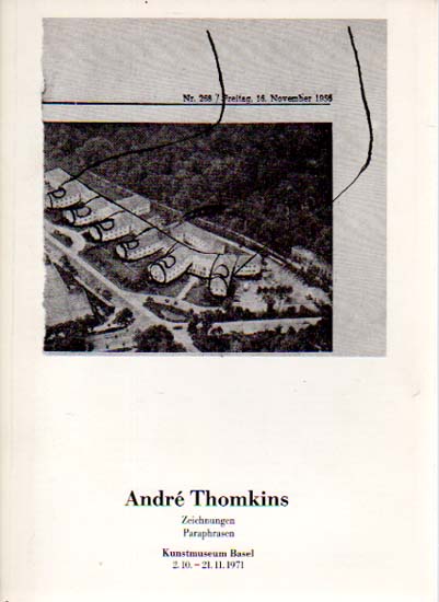 Thomkins, Andre: Zeichnungen. Paraphrasen. Kunstmuseum Basel, 2.10.-21.11.1971. 1. Auflage. Basel. Kunstmuseum Basel. 1971. 21 x 15 cm. 36 unpaginierte S. (inklusive eingebundenem Leporello) OKarton. Stempel aus privater Bibliothek auf der ersten Seite, Rücken etwas nachgedunkelt, sonst gutes Exemplar. Mit 2 kurzen Textbeiträgen von Dieter Koepplin und 16 schwarz-weiß Abbildungen.