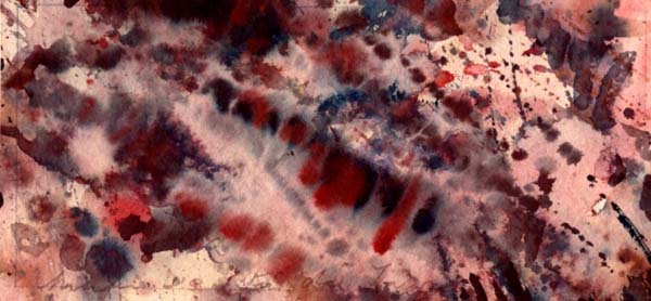 Sackenheim, Rolf: Abstrakte Komposition. 1 Blatt. Gutes Exemplar. Mischtechnik auf Karton, 30,4 x 14,4 cm. Aquarell, Gouache, Bleistift. Im unteren rand in Bleistift signiert, datiert 1983 und mit kurzer Zueignung versehen.