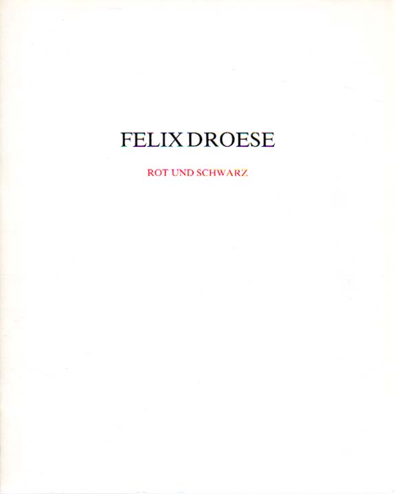 Droese, Felix: Rot und Schwarz. November 1984. 1. Auflage. Wien/Düsseldorf. Galerie Hubert Winter. 1984. 26 x 21 cm. 20 unpaginierte S. OKarton. Einband leicht lichtrandig, sonst gutes Exemplar. Verzeichnet 9 abgebildete Arbeiten.
