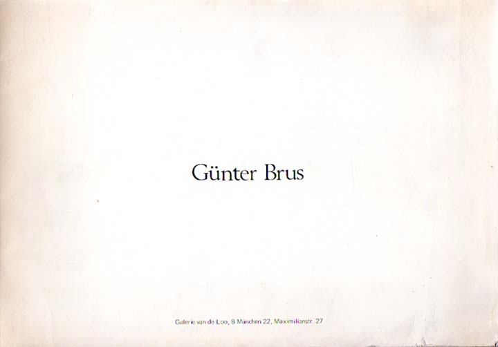 Brus, Günter: Der Vollschmerz und Arbeiten von 1973 und 1975. 1. Auflage. München. Galerie van de Loo. [1975]. 21 x 30 cm. 16 unpaginierte S. OKarton. Einband vom Rücken her nachgedunkelt und etwas fleckig, etwas angestaubt, sonst ordentliches Exemplar. Mit 19 schwarz-weiß Abbildungen, davon 9 ganzseitig.