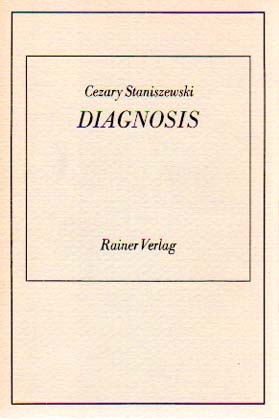 Staniszewski, Cezary: Diagnosis. [Reproduktionen nach Handzeichnungen im Format 10 x 10 Zentimeter]. 1. Auflage. Berlin. Rainer Verlag. 1989. 15 x 10 cm. [170] unpaginierte S. OEnglisch-Broschur. Rücken etwas nachgedunkelt, sonst gutes Exemplar. Durchgehend mit ganzseitigen schwarz-weiß Abbildungen versehen.
