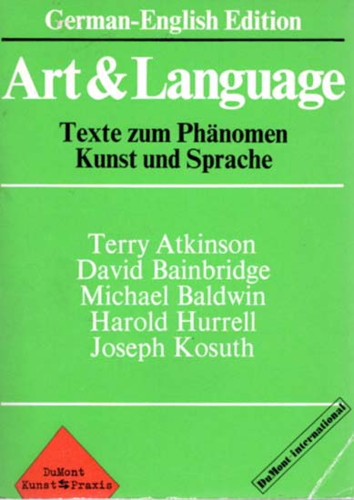 Art & Language. Texte zum Phänomen Kunst und Sprache. Terry Atkinson, David Bainbridge, Michael Baldwin, Harold Hurrell, Joseph Kosuth. Herausgegeben von Paul Maenz und Gerd de Vries. Erste Ausgabe. Köln. DuMont Schauberg. 1971. 20 x 15 cm. 347 S., 2 Blatt. OKarton. Rücken etwas berieben, LKapital minimal bestoßen. Gutes Exemplar. DuMont Kunst – Praxis. Deutsch -Englische Edition / German – English Edition.