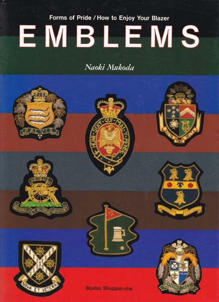 Mukoda, Naoki: Emblems. Forms odf Pride/ How to enjoy your blazer. Erste Auflage. Tokyo. Bijutsu Shuppan.sha Ltd. 1987. 30 x 22 cm. 127 S. Illustrierter OKarton mit Klappenumschlag. Umschlagkanten mit minimalen Bereibungen und Knickspuren. Sonst gutes Exemplar. Durchgehend mit ganzseitigen farbigen Abbildungen versehen. Text in englischer und japanischer Sprache.