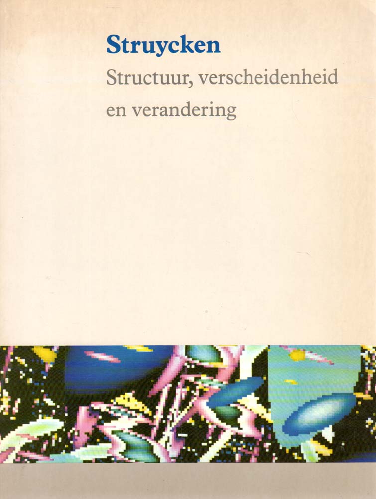 Struycken, Peter: Structuur, verscheidenheid en verandering. Het werk van P. Struycken belicht. [Groninger Museum te Groningen van 21 oktober t/m 25 november 1984]. Auflage: 2500 Exemplare. Utrecht / Groningen. Uitgeverij Reflex / Groninger Museum. 1984. 27 x 21 cm. 103 S. OKarton. Einband leicht nachgedunkelt, obere Stoßkante des Vorderdeckels mit winziger Knickspur, sonst gutes Exemplar. Texte in Niederländisch. Durchgehend mit meist farbigen Abbildungen versehen.