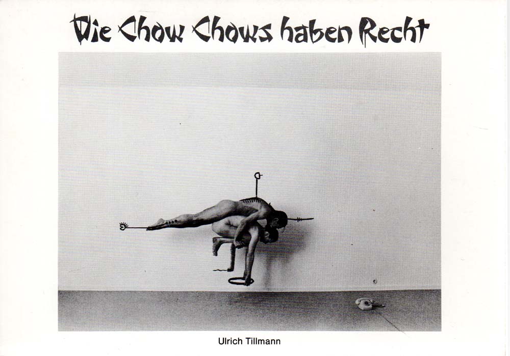 Tillmann, Ulrich: Die Chow Chows haben Recht. Arbeiten mit Fotografien von Ulrich Tilmann mit einem Vorwort von Prof. L. Fritz Gruber und einem Text von Dr. Evelyn Weiss. Ausstellung: 1.6.-1.7.83, Artothek, Köln. 1. Auflage. Köln. Gallery without a Gallerist. 1983. 63 S. OKarton. Sehr gutes Exemplar. Auf dem Titelblatt handschriftlich von Ulrich Tillmann in blauer Tinte signiert sowie mit „Hinweis-Pfeil“ versehen. Durchgehend mit ganzseitigen schwarz-weiß Abbildungen versehen.