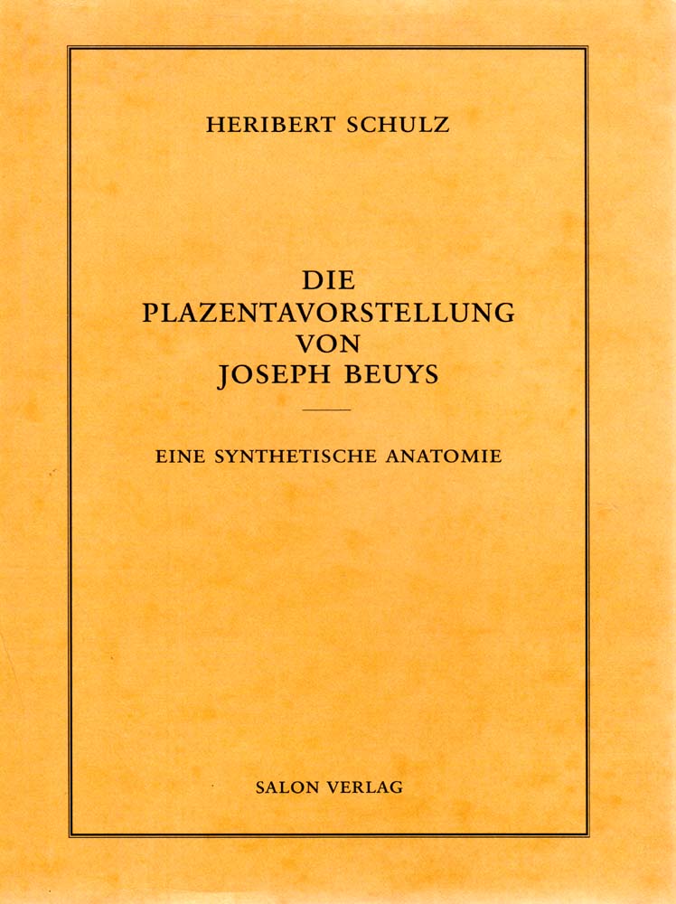 Beuys, Joseph – Heribert Schulz: Die Plazentavorstellung von Joseph Beuys. Eine synthetische Anatomie. Auflage: 500 nummerierte Exemplare. Köln. Salon Verlag. 1997. 25 x 19 cm. 96 S. OPappband mit OUmschlag. Sehr gutes Exemplar. Erstauflage von 1997 in 500 nummerierten Exemplaren, hier die Nummer 296. Mit 7 ganzseitigen schwarz-weiß Abbildungen.