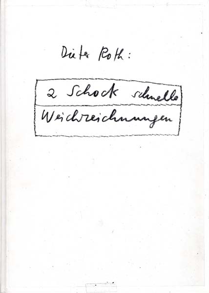 Roth, Dieter 2 Schock schnelle Weichzeichnungen. 1982. Auflage 200 Exemplare. Berlin. Rainer Verlag. 1983. 30,0 x 21,3 cm. 252 unpaginierte S. OPappband. Einband stellenweise etwas angestaubt und leicht nachgedunkelt, sonst sehr gutes Exemplar. Nummer 104 / 200 handschriftlich nummerierten und im Kolophon signierten Exemplaren. Durchgehend mit Schwarz-Weiß Abbildungen versehen. [Vgl. Dobke, Werkverzeichnis der Bücher, S. 201].
