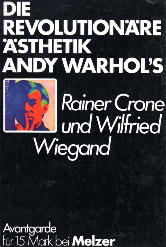 Warhol, Andy – Rainer Crone, Wilfried Wiegand: DIE REVOLUTIONÄRE ÄSTHETIK ANDY WARHOL’S. Erste Auflage. Darmstadt. Melzer Verlag GmbH. 1972. 23 x 16 cm. 144 S. Illustrierter OKarton. Einband etwas berieben nd leicht angestaubt, sonst gutes Exemplar. Durchgehend mit schwarz-weißen Abbildungen versehen.