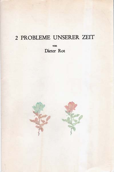 Rot, Dieter [Dieter Roth]: 2 Probleme unserer Zeit. Reykjavik. Dieter Rot. 1971. 23 x 14 cm. 48 S., 2 Blatt. OKarton mit OUmschlag. Umschlag vorne etwas lichtrandig, sonst sehr gutes Exemplar. Nummer 13 / 200 auf dem Vorsatz handschriftlich in Bleistift nummerierten und signierten und 1971 datierten Exemplaren. Mit gedruckter Widmung nach dem Titel: „Dieser Buchling sei Ossi Wiener gewidmet“. Einer von sechs von Dieter Roth zwischen 1971 und 1972 veröffentlichten sogenannten „Essays“, bestehend aus der seitenweise Wiederholung von Satzzeichen, Buchstaben oder einzelen Worten. Unaufgeschnittenes Exemplar. [Vgl. Dobke: Bücher und Editionen, S. 205].