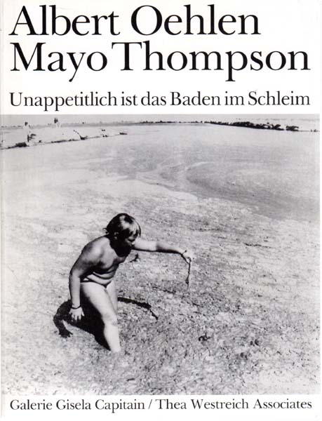Oehlen, Albert / Mayo Thompson: Unappetitlich ist das Baden im Schleim. Erste Auflage. Köln. Galerie Gisela Capitain / THea Westreich Associates. 1990. 19,6 x 14,6 cm. 92 unpaginierte S., 8 S. Falttafel. OKarton mit OKlappenumschlag. Sehr gutes Exemplar. Mit einem Text von Mayo Thompson in Englisch, 22 wiedergegebenen Zeichnungen in Kugelschreiber und Bleistift sowie 15 Studien für Bühnenkostüme und 4 Bühnenbildern zu Wagner’s Tannhäuser an der Oper Bremen sowie einer Collage. Auf einer Tafel im Text sowie auf einer vierfach ausfaltbaren Tafel sind unter anderem ferner einige gemeinsame Arbeiten mit Martin Kippenberger wiedergegeben. Beiliegend eine Einladungskarte der Galerie Gisela Capitain zu Albert Oehlen, „Zeichnungen“, 7. September bis 5. Oktober 1991. Selten.