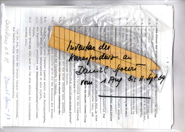 Spoerri, Inventar der Korrespondenz an Daniel Spoerri vom 1. Aug. bis 11. Sept.