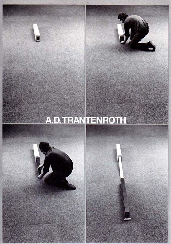 Trantenroth, A.D.: A.D. TRANTENROTH. [Kunstmuseum Bonn, 31.8.-2.10.1977]. 1. Auflage. Bonn. Städtisches Kunstmuseum. 1977. 30 x 21 cm. 22 unpaginierte S. OKarton. Gutes Exemplar. Mit einem Text von Eugen Gomringer und einer Vorbemerkung von Dierk Stemmler. Durchgehend mit schwarz-weiß Abbildungen versehen.